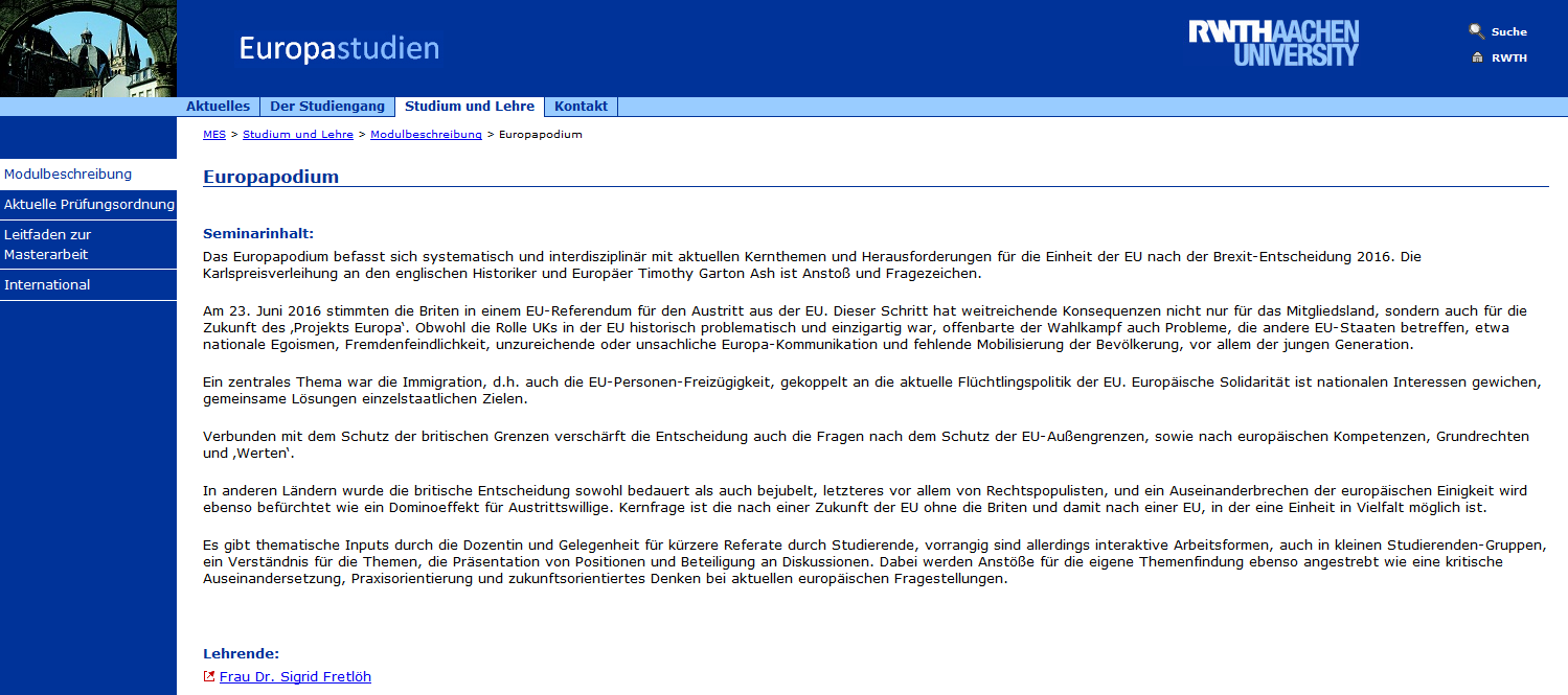 Europapodium (Teil des MA Studiengangs Europawissenschaften) – Infos (1) (2), 2017 |